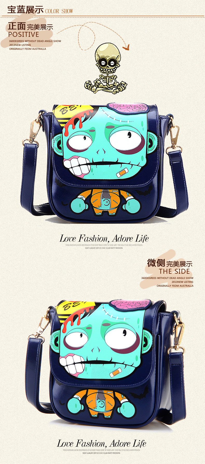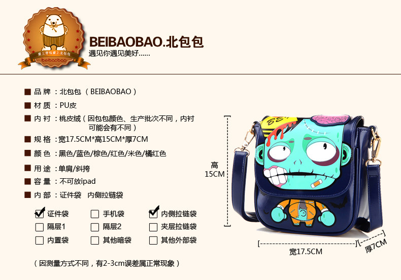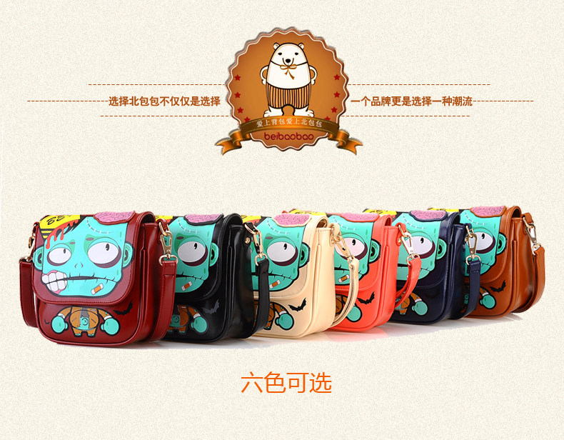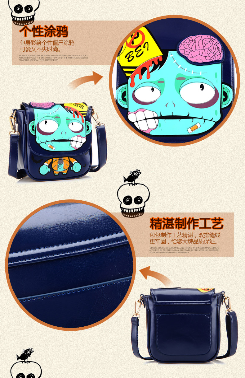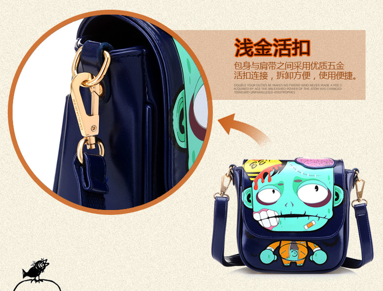 新款斜挎女包时尚卡通印花单肩斜跨小包个性僵尸包