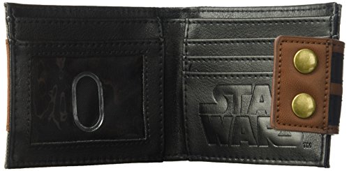 Binding : Apparel Product Description Star Wars Rogue One Rebel Snap Bi-Fold Wallet Three Horizontal card pockets, Two Vertical Card Pockets, One Full Size Currency Compartment One Transparent ID Window, 50% PU Leather / 50% Polyester, Metal Rebel Logo, 4.5" x 3.5" Folded 0