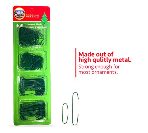 R’ND’s 300 Pack Ornament Hooks Christmas Tree Decorating Hangers- Metal Wire Ornament Hooks For Christmas Tree Decoration Hanging (Green)