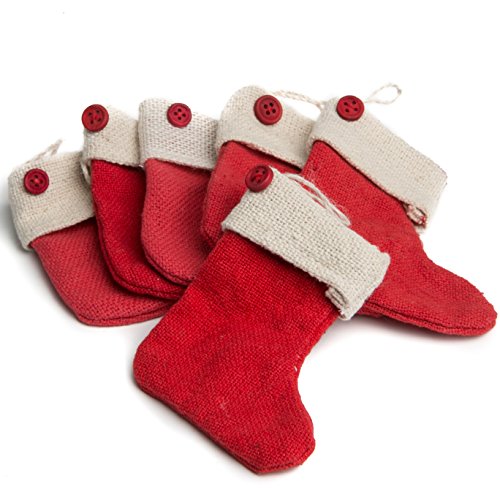 - Factory Direct Craft® Group of 6 Red Rustic Burlap Christmas Stockings for Holiday Tree Trim and Home Decor
