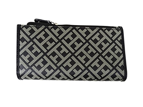 Travel in style with this deluxe Tommy Hilfiger Signature Continental Logo Wallet, complete with a premium fabric lining and the unique silver plated logo. Tommy Hilfiger uses only the finest quality custom material in crafting their handbags. Each piece slight texture and color variation to give their product its own unique character over time. Enjoy the classic styling and unique design of your Tommy Hilfiger wallet! Pair it with the many style of totes and shoppers available!Feature