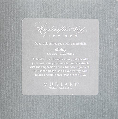 -. Binding : Health and Beauty -. Brand : Mudlark -. Color : multi -. EAN : 0636988717397 -. Feature : Quadruple French milled hand crafted soap bar paired with a decorative dish / 6.6-Ounce bar; plate measures 4.75 x 4.75 x 2-inches / A sparkly and vibrant scent with juicy citrus notes fused with an herbal green bouquet / Proudly made in the USA / Look to Mudlark for paper products, handcrafted soaps and candles that are both beautiful and environmentally smart -. Label : Mudlark Papers Inc. -. Manufacturer : Mudlark Papers Inc. -. MPN : 4425385 -. NumberOfItems : 1 -. PackageQuantity : 1 -. PartNumber : 4425385 -. ProductGroup : Beauty -. ProductTypeName : BEAUTY -. PublicationDate : 2015-09-25 -. Publisher : Mudlark Papers Inc. -. ReleaseDate : 2015-09-15 -. Size : 4.75x4.75x2 -. Studio : Mudlark Papers Inc. -. Title : Mudlark Handcrafted Soap Bar and Dish Gift Set, Malay/Moonflowers -. UPC : 636988717397