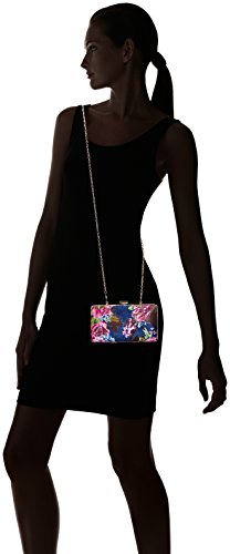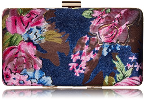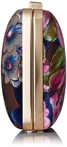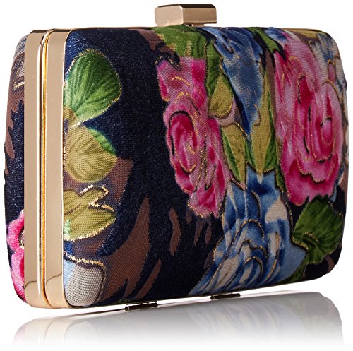 -. Feature : Framed minaudiere / Velvet material with pops of pinks and blues / Drop in chain strap / Fully lined interior features back wall slip pocket