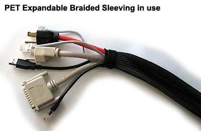 Techflex Polyethylene Terepthalate Monofilament Yarn, Expandable Braided Sleeving, 10-feet x 0.75-inch, Black