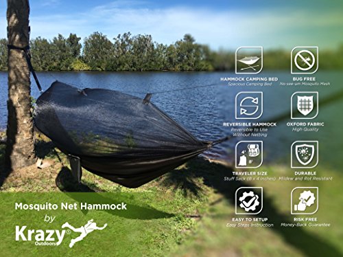 ENJOY THE OUTDOORS BUG-FREE - Protect yourself from mosquitos, no-see-ums and other insects while you enjoy nature, stress-free. The Night Guardian Hammock from Krazy Outdoors features a fine mesh bug-free netting to keep you safe and comfortable on all your outdoor trips. (Straps not included).