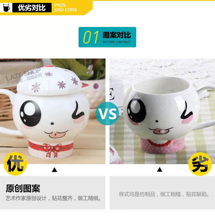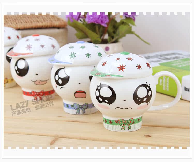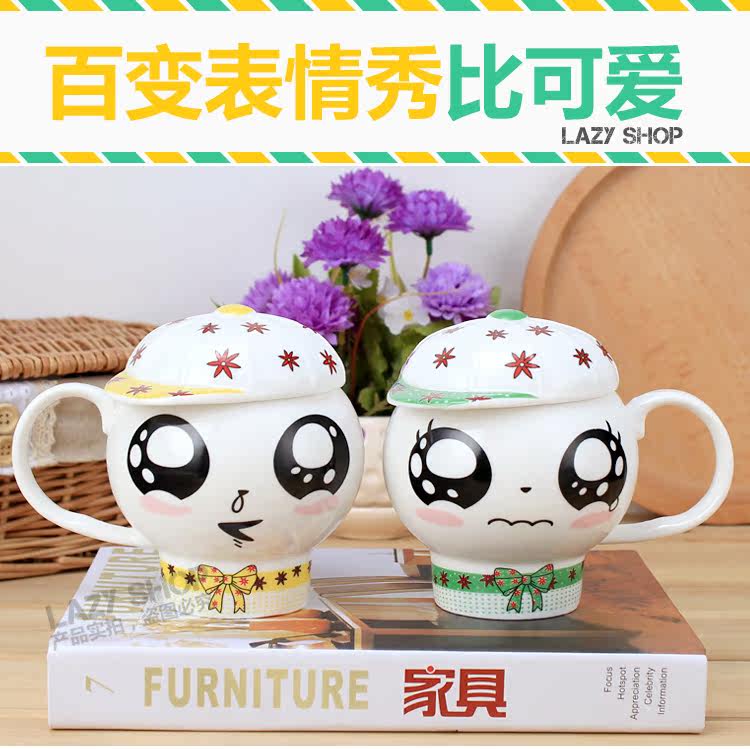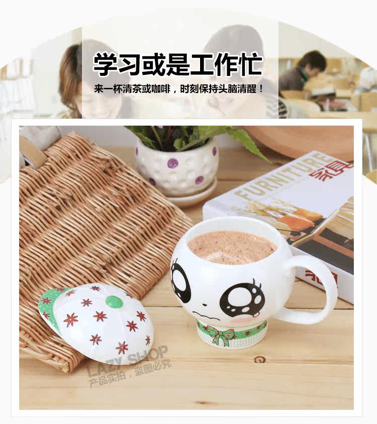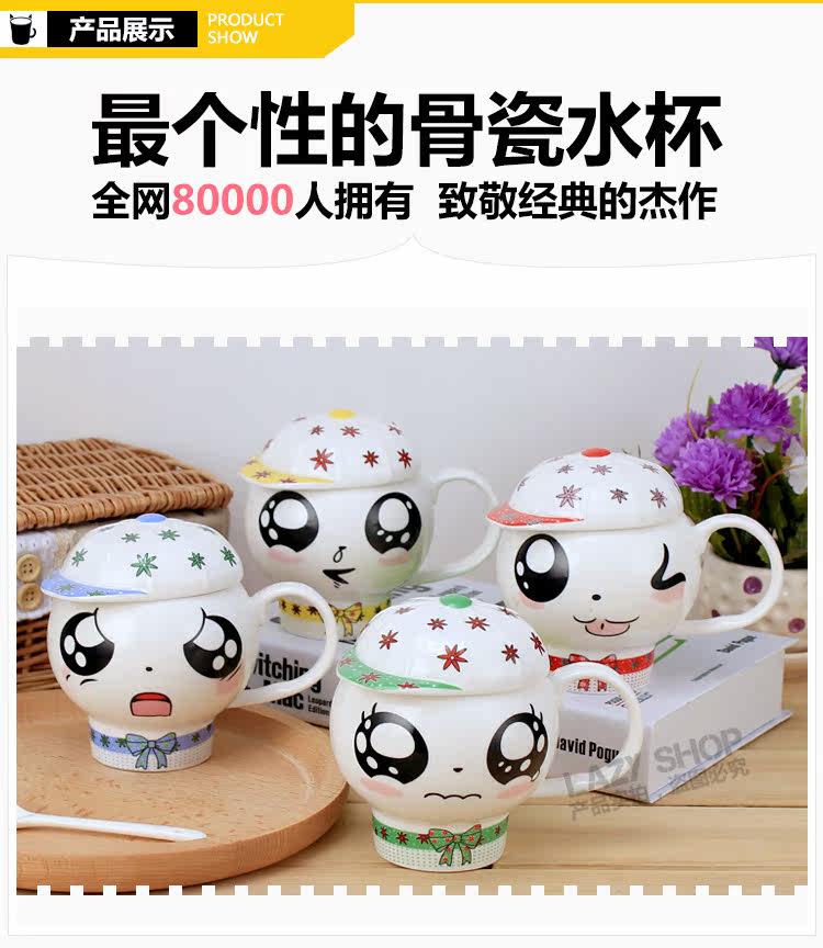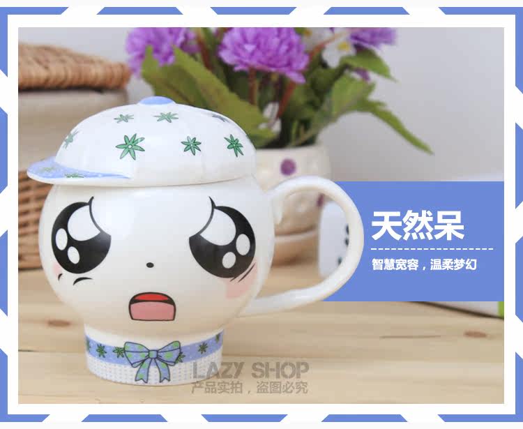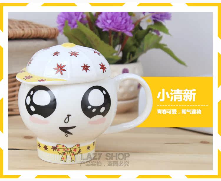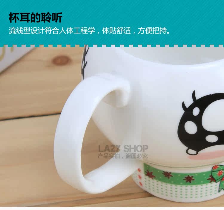 懒角落卡通马克杯陶瓷水杯可爱个性萌杯创意情侣杯子带盖送勺
