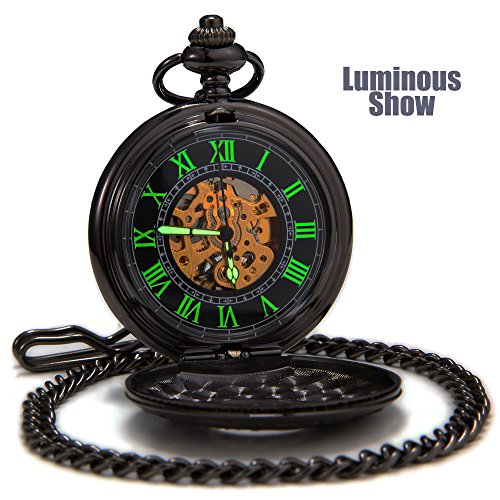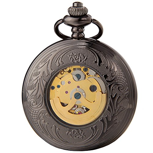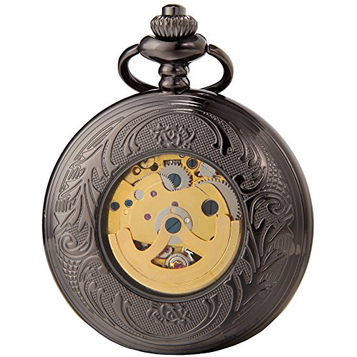 -. Title : SEWOR Vintage Hollow Pocket Watch Automatic Mechanical Self Wind & Luxury Leather Gift Box
