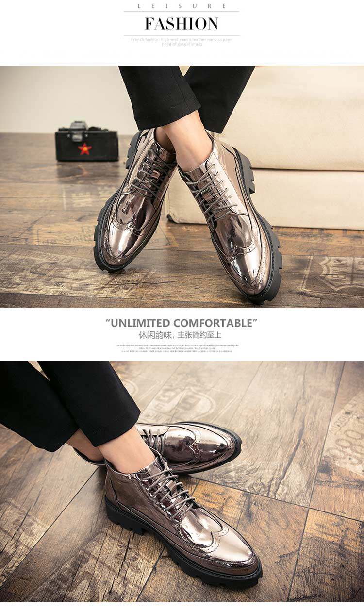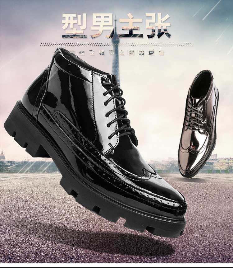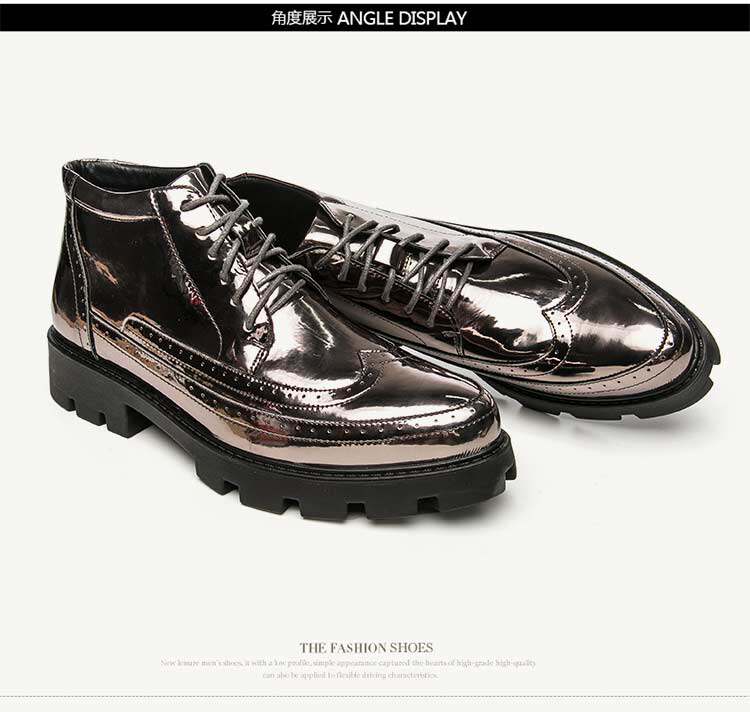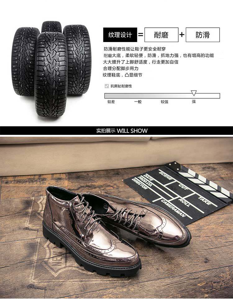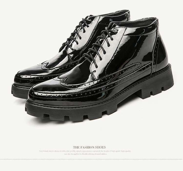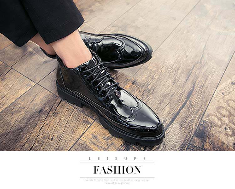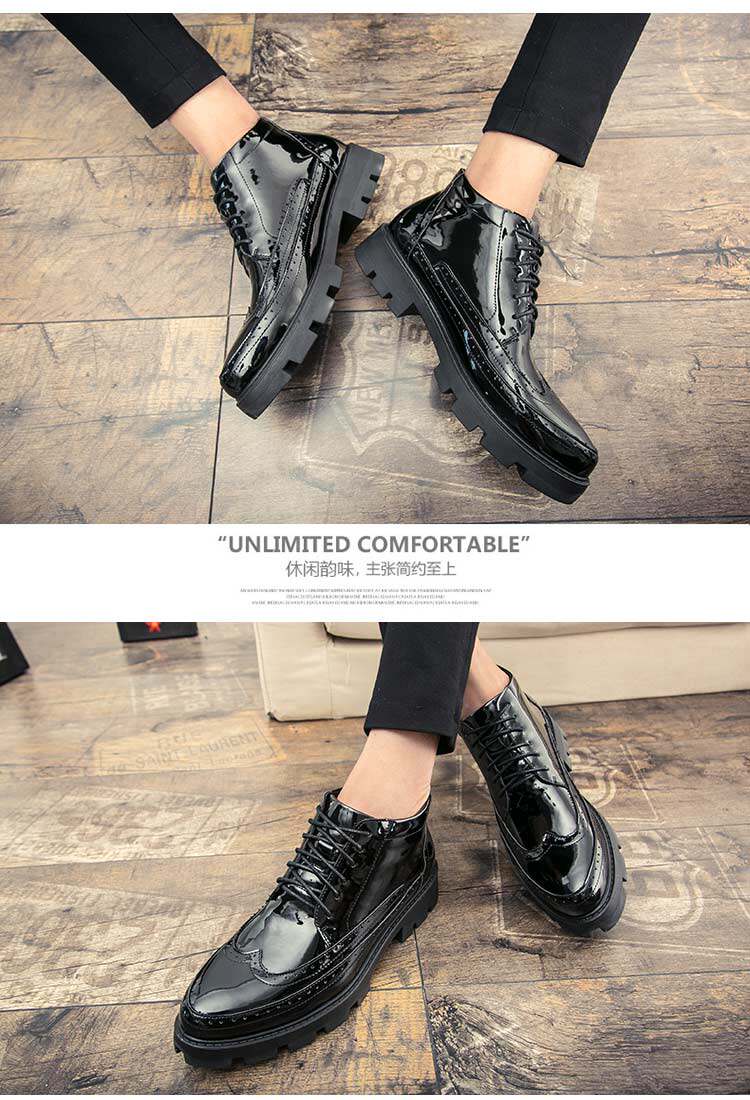 秋冬男鞋子英伦尖头高帮皮鞋布洛克漆皮亮面短靴百搭镜面夜店休闲