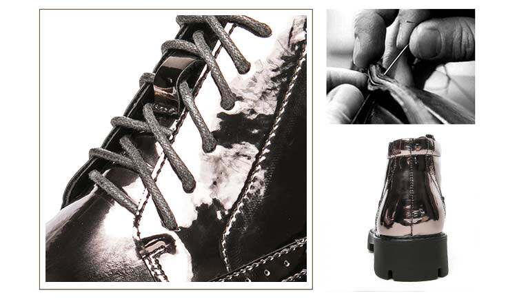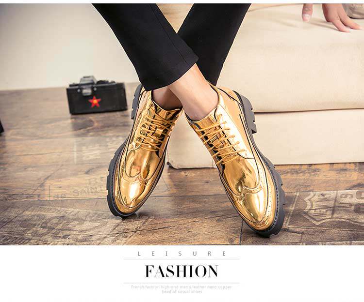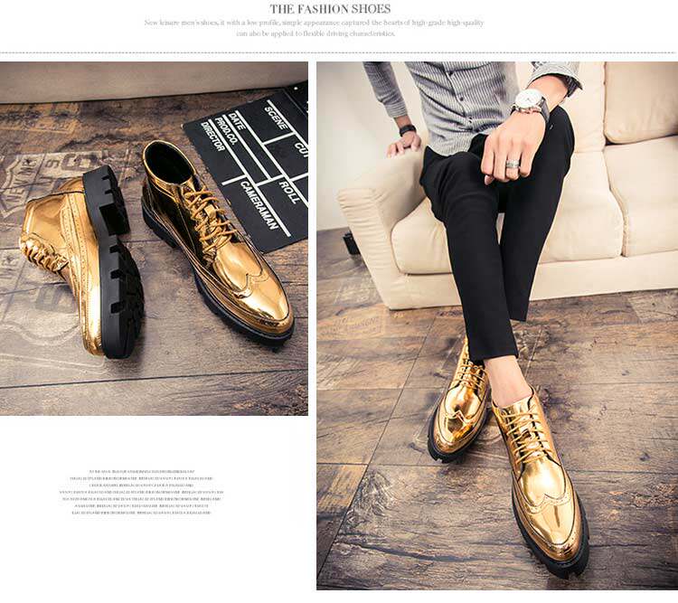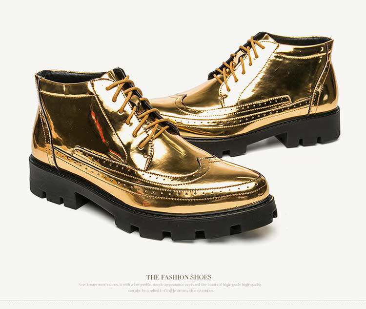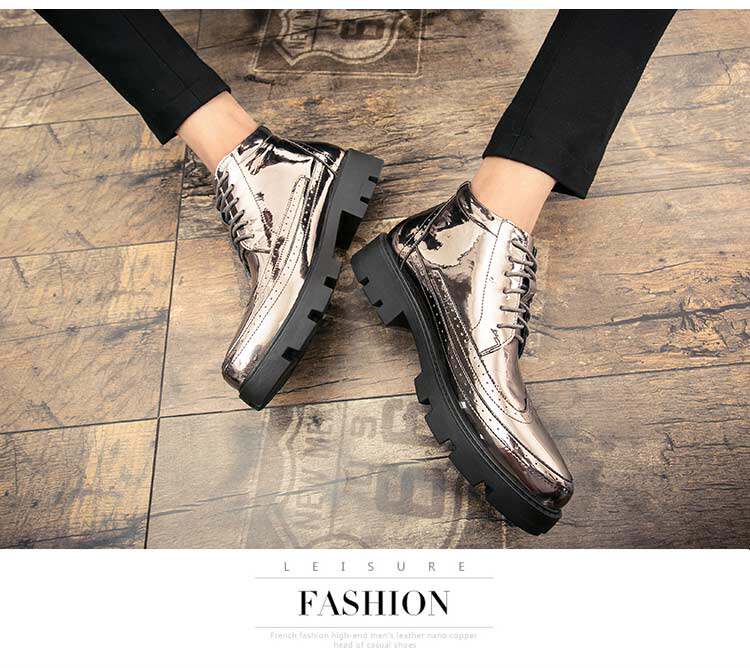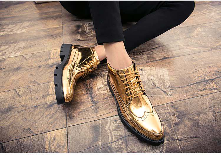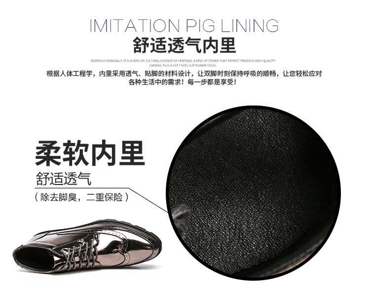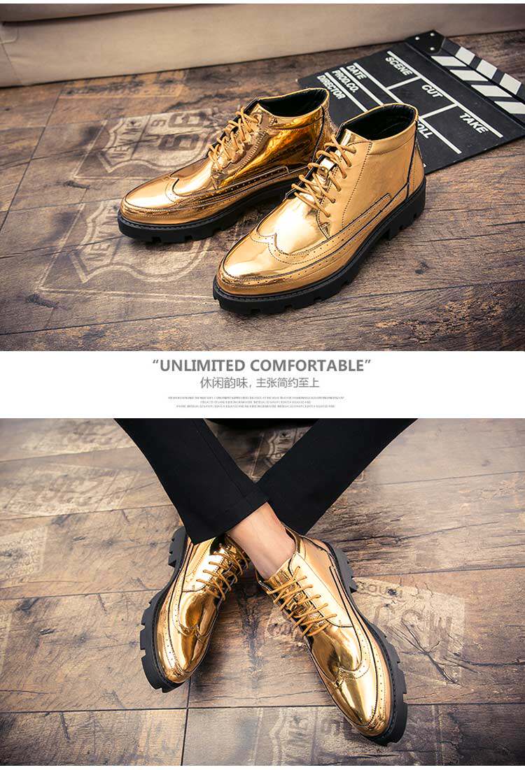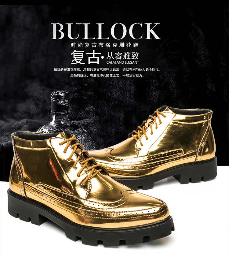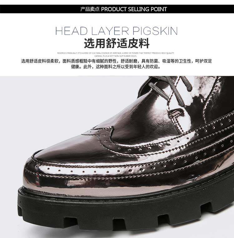 秋冬男鞋子英伦尖头高帮皮鞋布洛克漆皮亮面短靴百搭镜面夜店休闲