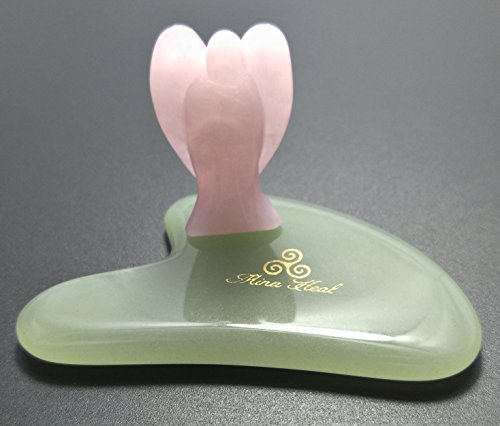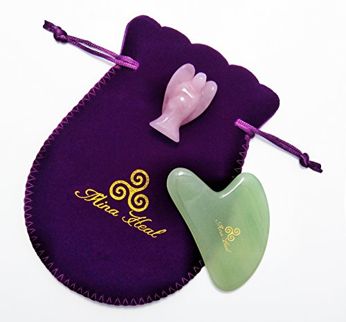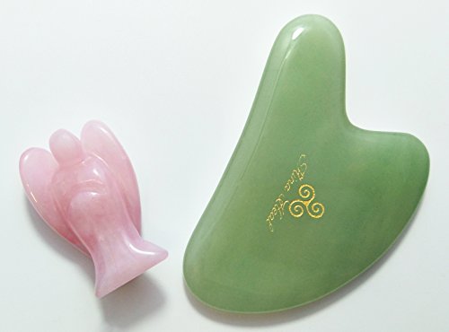 2 PRODUCTS FOR ONE PRICE: Your order comes with 2 products for only one price, containing 1 green jade stone Gua Sha facial massager for self facial massage, skin tightening and wrinkles removal massages, and 1 rose quartz guardian angel, pocket size.