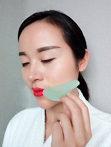 ANTI AGING FACIAL MASSAGER: The jade stone Gua Sha facial massager is beautifully designed based on both experience over 2000+ years and modem ergonomics. Use the points and edges of this tool to increases blood flow (microcirculation) in the soft tissue to gain healthier skin.