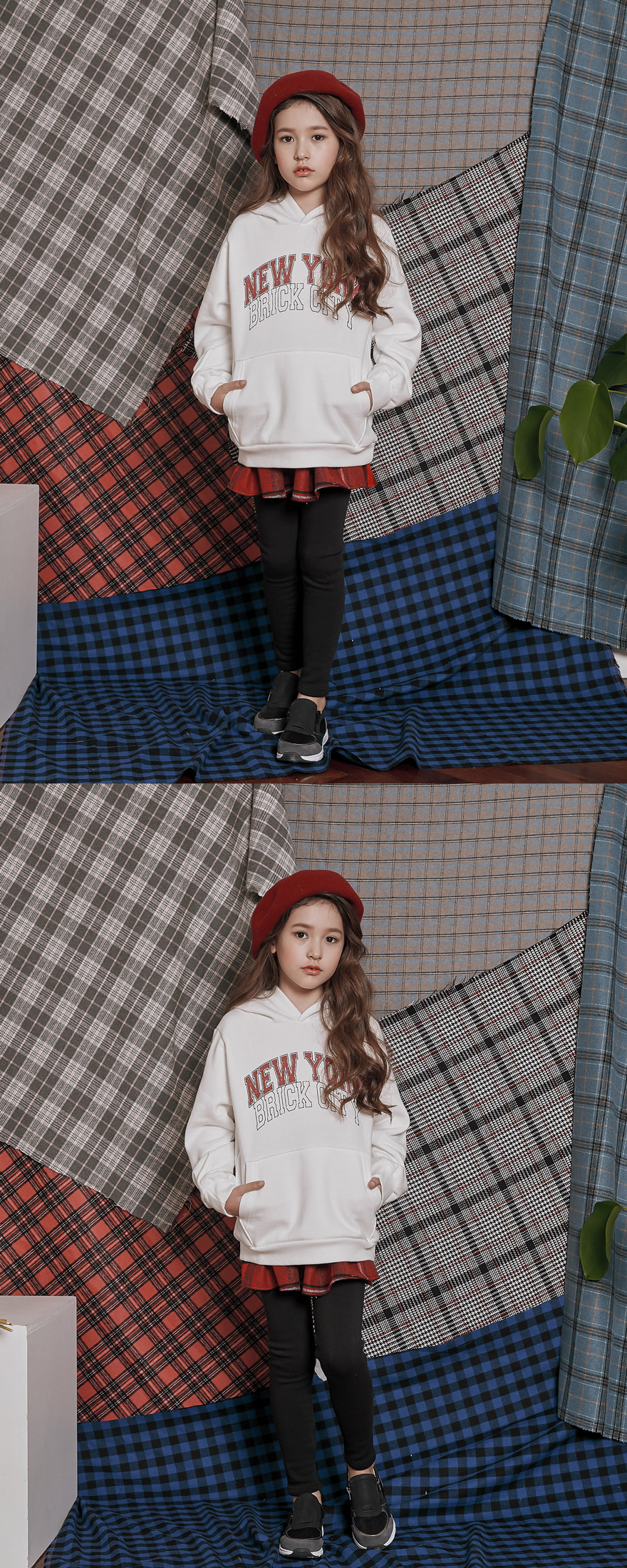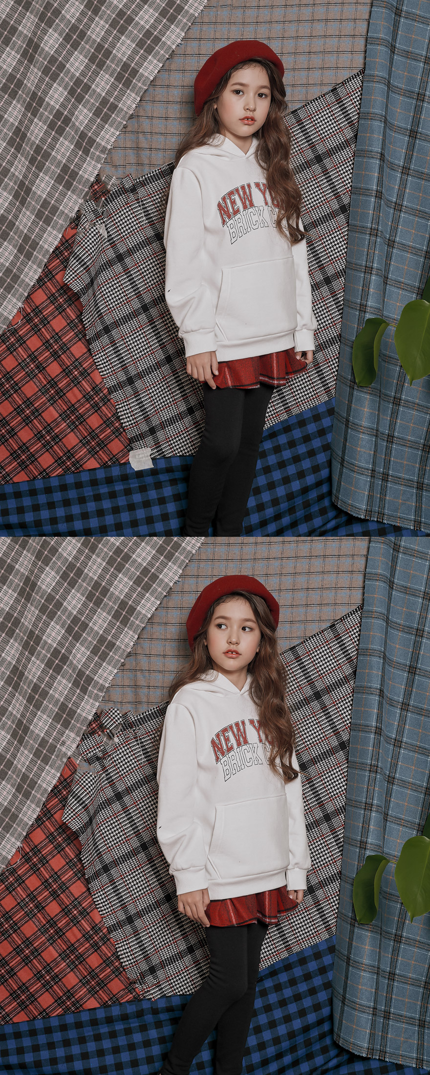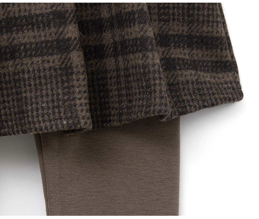 따뜻한 색감에 예쁘게 퍼지는 핏의 모직 체크 치마에 부드러운 밍크 안감 레깅스를 덧데어준 제품이에요~ 모델 아이처럼 후드티, 맨투맨 등과 매치해 캐주얼하게 코디해 주셔도 좋고 셔츠, 블라우스 등과 함께 입혀주셔도 어울리는 스타일리쉬하면서 실용적인 아이템이에요;)