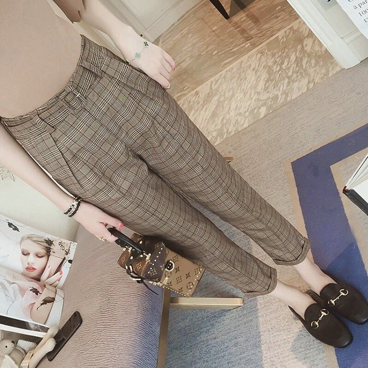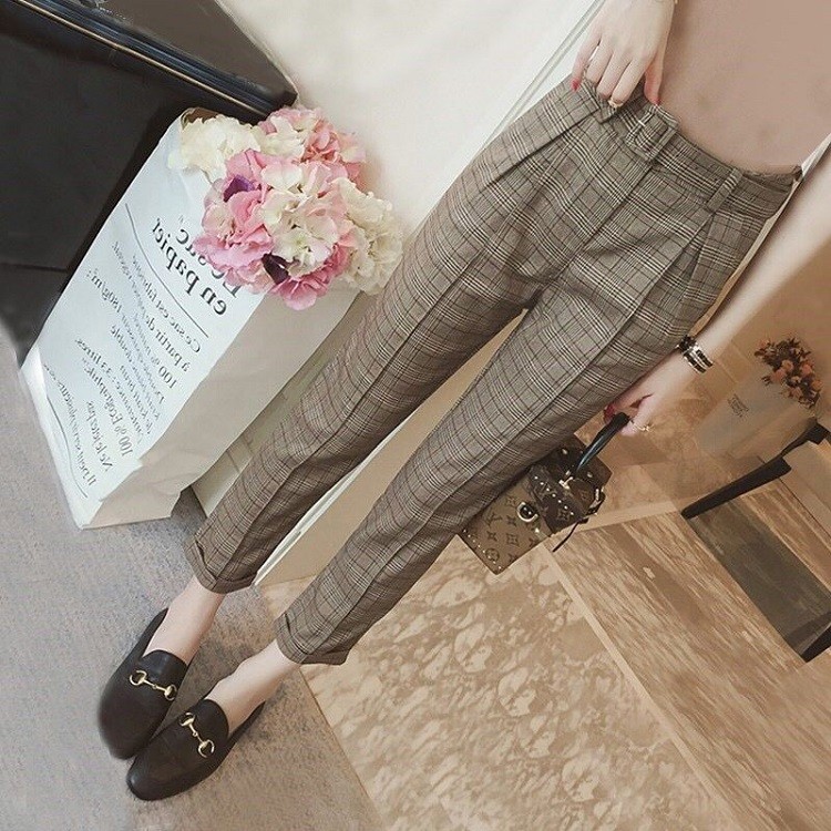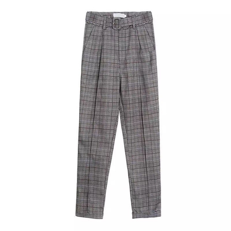 ベルト付き テーパードパンツ サブリナ パンツ クロップドパンツ グレンチェック 美脚 2color