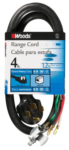 Woods 0761 6/2 - 8/2 SRDT 50-Amp Range Appliance Power Supply Cord, 4-Feet, Black