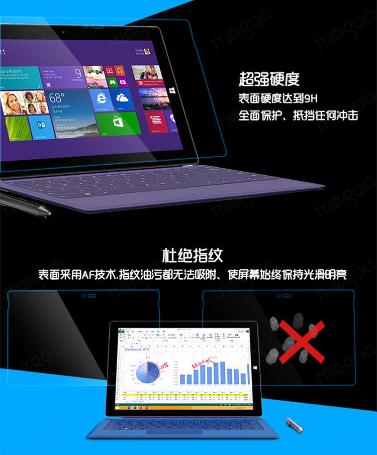 9H Tempered glass for Microsoft Surface Pro4/Pro3、Microsoft surface3