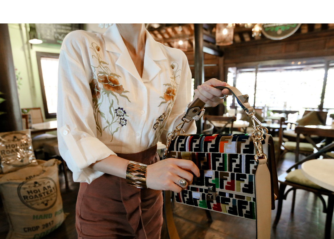 바스트의 자수 디테일로 고급스러운 포인트를 주었어요