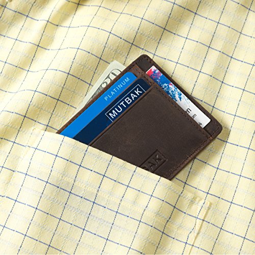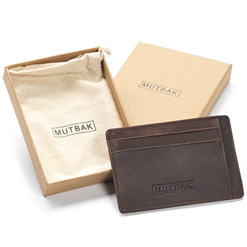-. Binding : Apparel -. Brand : Mutbak -. Department : mens -. Feature : HIGH QUALITY - LONG LASTING LEATHER - The best Full Grain, Vegetable Tanned Leather that is guaranteed to last. Combined with high quality stitching and you have a wallet made to stay with you for a long time! -. ProductGroup : Apparel -. ProductTypeName : ACCESSORY -. Size : Card Holder -. Title : MUTBAK Sentry - Slim Leather Cardholder Wallet with RFID Blocking Minimalist Design