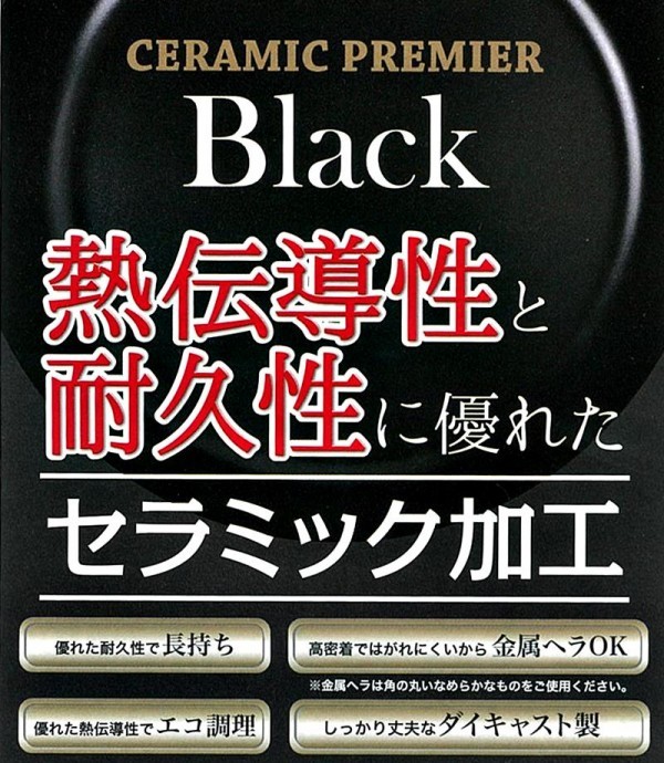| 素材・材質 | 本体:アルミニウム合金(セラミック塗膜加工) はり底:鉄(溶射加工) 取っ手:フェノール樹脂(耐熱温度150度) |