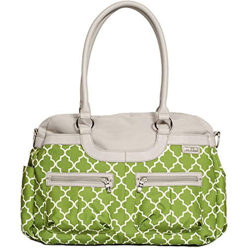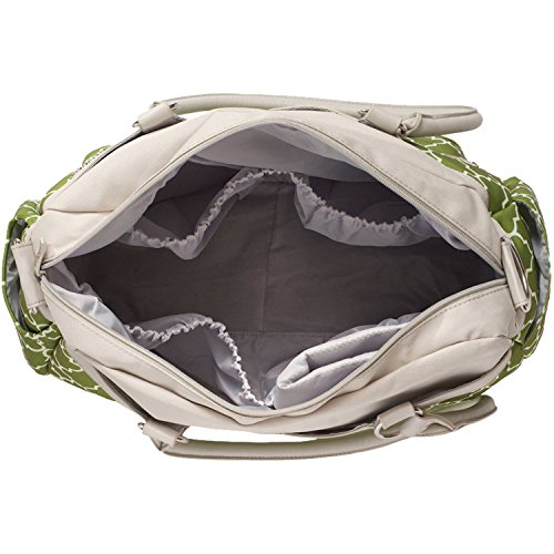 Product Description 1 Piece Green White Large Geometric Print Diaper Bag For Babies, Baby Nursery Tote Backpack Trellis Lattice Jacquard Ikat Pattern Design Roomy Changing Pad Zippered Storage Shoulder Strap, Cotton 0