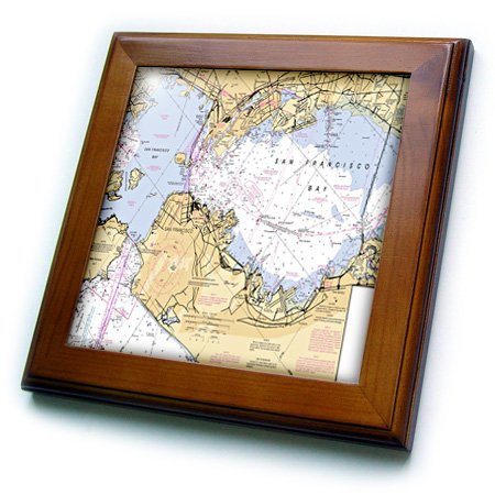 3dRose ft_204896_1 Print of San Francisco Bay Nautical Chart Framed Tile, 8" x 8"