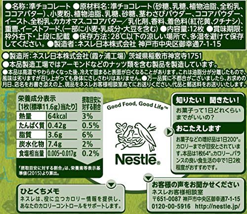 原材料:準チョコレート(砂糖、乳糖、植物油脂、全粉乳、ココアバター)、小麦粉、植物油脂、乳糖、砂糖、茎わさびパウダー、全粉乳、イースト、ココアパウダー、カカオマス、ココアバター、乳化剤、着色料(紅花黄、クチナシ)、香料、重曹、イーストフード、(原材料の一部に大豆を含む)