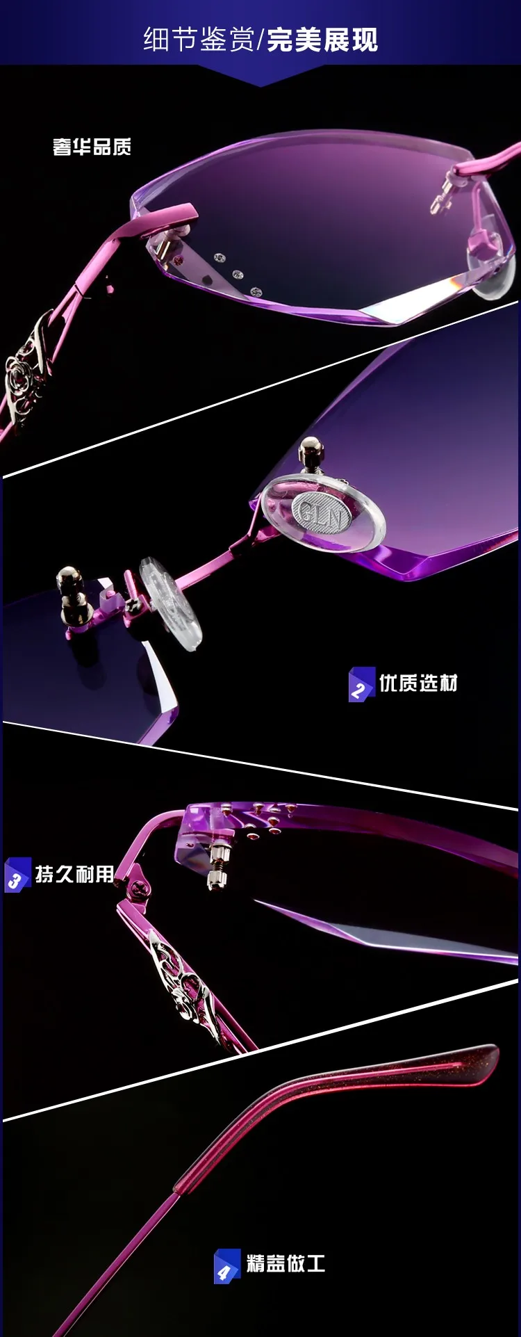 Glasses style:Rimless glasses