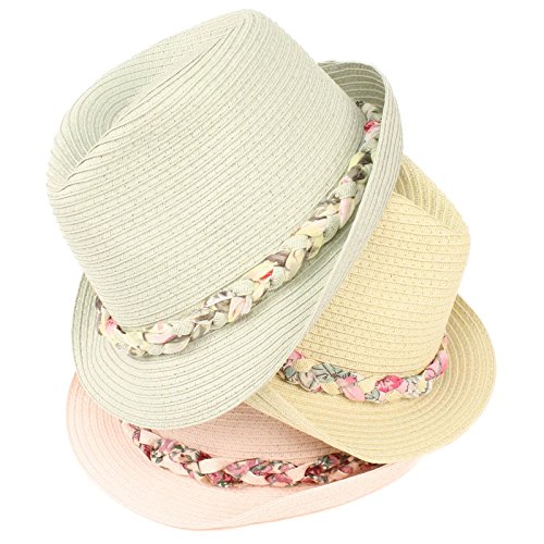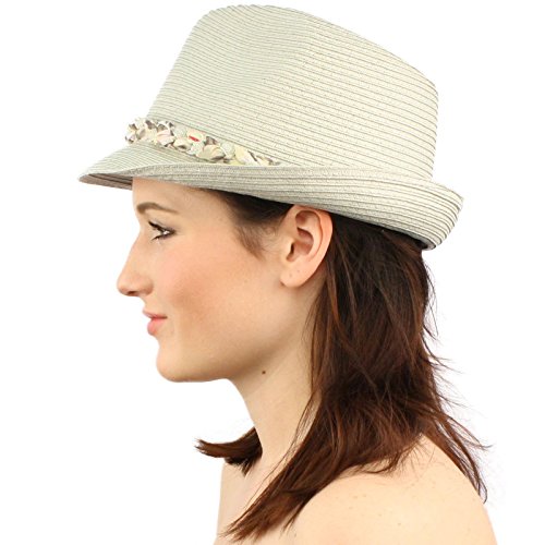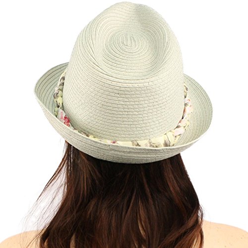 -. Title : Ladies Removable Cute Floral Elastic Headband Summer Fedora Trilby Sun Hat Gray