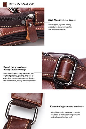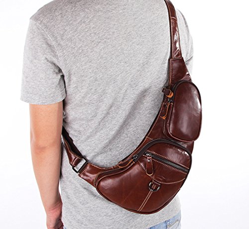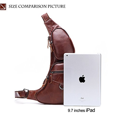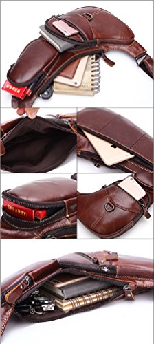 -. Feature : HIGH QUALITY: 100% Top Layer Genuine Cow Leather.This strong leather is very durable. / Size: 8.26"(L)*1.37"(W)*16.14"(H)/21*3.5*41 cm; Weight: 0.83 pounds. / Capacity: 7inch mobile phone, wallet, power bank, key and other portable supplies. / Multipuepose use:Great flexibility,the sling bag also can be used as a chest bag, shoulder bag.it can be worn on whichever side you are comfortable with.A great daypack for school, dating, shopping and traveling in daily life. Also could be carried for outdoor activities, running, cycling, camping, etc. / Fashionable and practical bag, with sturdy materials,strong zippers,(smooth and work well.)Adjustable and slide easily strap makes it fits people with different height.Different compartments for your essentials.Perfect to carry on a trip for when you're doing a day trip or need space to put the goodies you found.