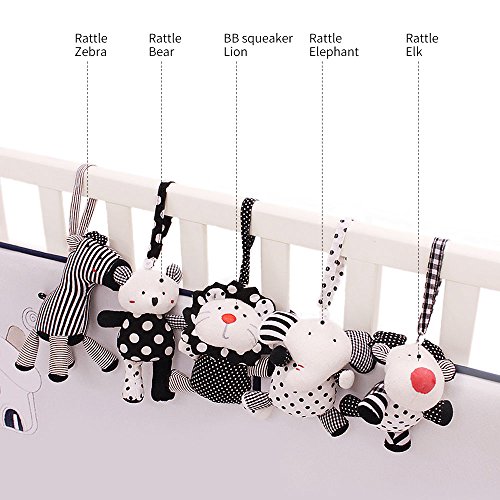 SHILOH Baby Crib Stroller Carseat Decoration 5PCS White and Black (Zoo Animals)