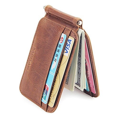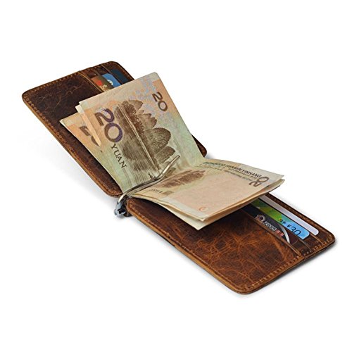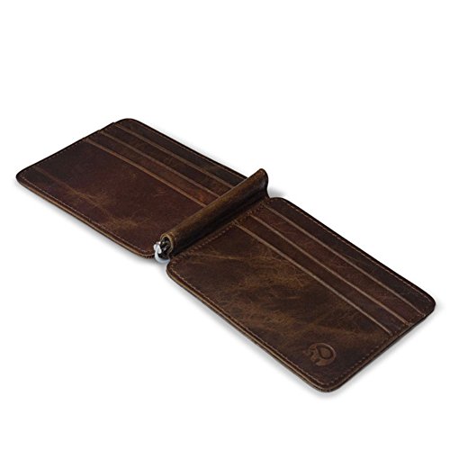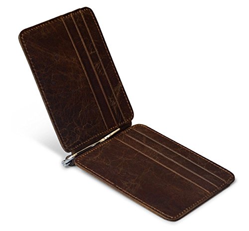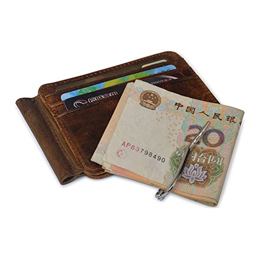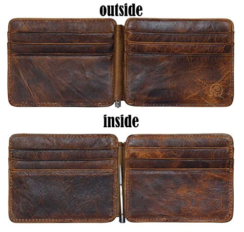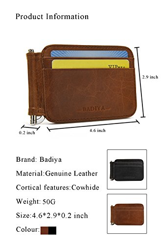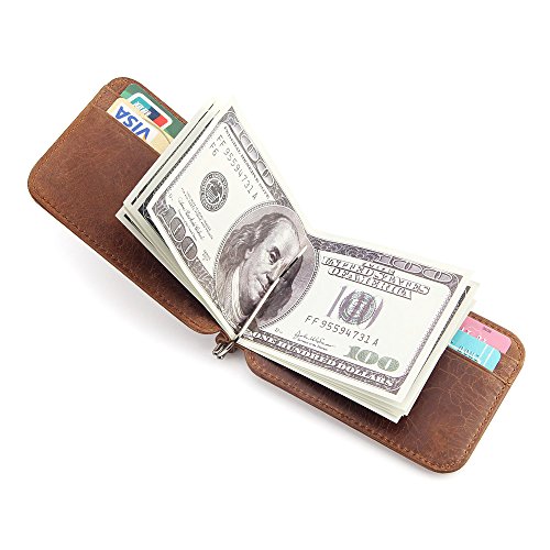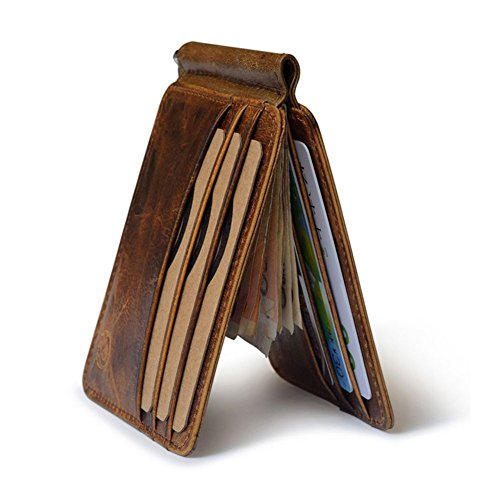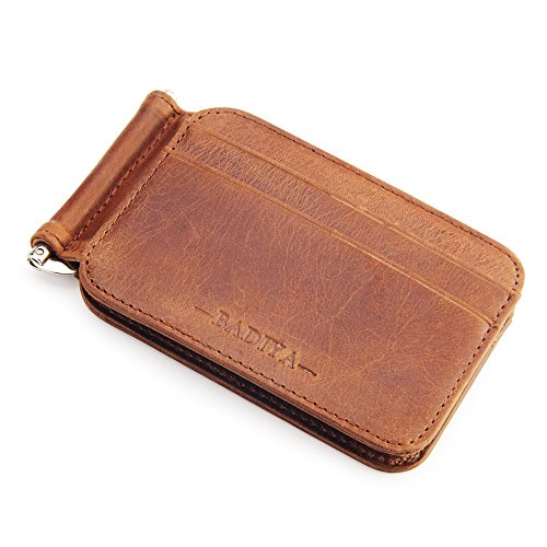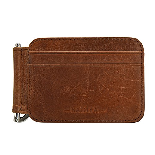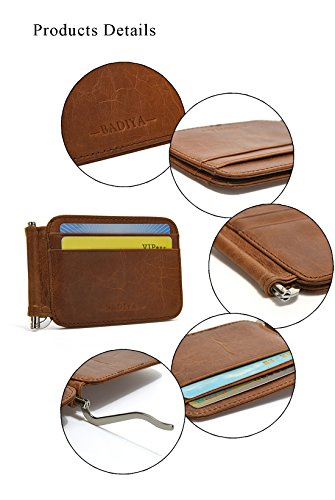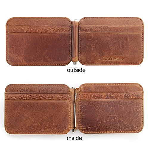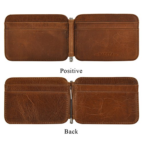 | Badiya Men's Vintage Genuine Leather Bifold Money Clip Wallet Slim Card Holders |