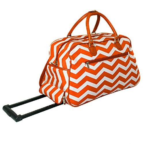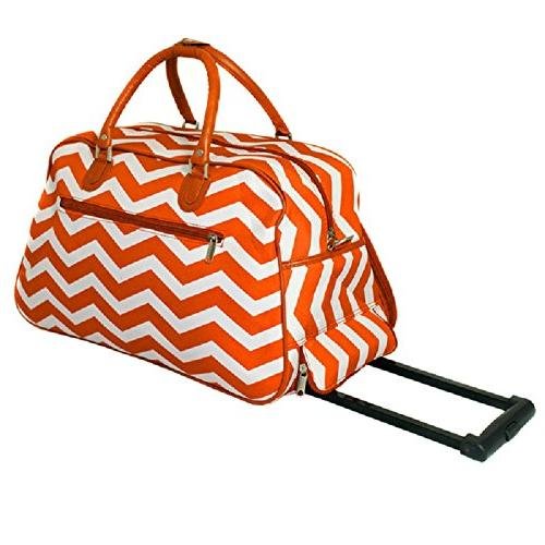 Product DescriptionOrange White Chevron Pattern Carry Rolling Upright Duffle Bag, Fashionable, Zigzag Stripe Themed Duffel, Sofsided, Horizontal Striped Travel Duffel Bag, Lightweight, Wheeling Luggage0