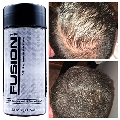 WHAT IT DOES •Instantly fills in thinning areas •Conceals hair loss •Makes fine hair look completely thick and full •Great as a root touch-up between colorings WHAT ELSE YOU NEED TO KNOW Hair Fusion Hair Fibers resist wind, rain, and perspiration for long-lasting results in all conditions. Available in nine colors that can be mixed to match virtually any hair color. Hair Fusion Hair Fibers work for all hair types and textures. Hair Fusion Hair Fibers also work great for creating perfect hair lines, covering extension tracks, and touching up roots between hair color appointments. Easily washes out with shampoo.Feature
