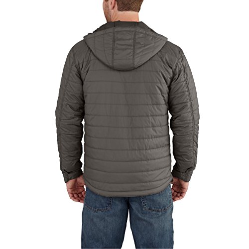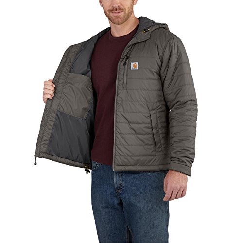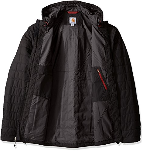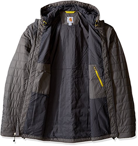 Studio : Carhartt Sportswear - Mens Publisher : Carhartt Sportswear - Mens Binding : Apparel Product Description Amazingly durable and dependably water repellent. Rolls with the punches when the rain rolls in. Lightweight yet warm, it can be worn by itself on warmer days or as a layer on chillier days. Durable and water repellent. Made from 1.75-ounce, 100 percent nylon cord ur a shell and offers nylon lining quilted to 100gram polyester insulation, left-chest map pocket, two lower-front pockets, two inside pockets: one with zipper closure and one with hook-and-loop closure, lower pockets with hidden snap closure, hook-and-loop adjustable cuffs, drawcord adjustable hem, triple-stitched main seams for durability, drop tail for added coverage and has an attached hood. 0