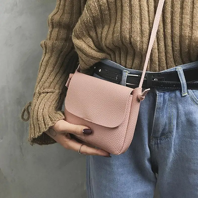 ソリッドカラーの女性メッセンジャーバッグクロスボディpuレザーミニカジュアルショルダーハンドバッグ