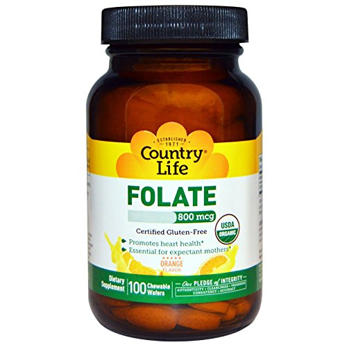 Studio : Country Life Publisher : Country Life Binding : Health and Beauty Product Description Established 1971 Certified Gluten-Free USDA Organic Promotes Heart Health Essential for Expectant Mothers Dietary Supplement Certified Organic by Quality Assurance International - Our Pledge of Integrity - Authenticity Cleanliness Freshness Consistency Accuracy From the leader in B-Vitamins^, Country Life's Organic Folate is certified USDA organic. This folate is water extracted from organic lemon peel to maintain its purity. This delicious orange flavored chew (no water needed) is available in both 400 mcg and 800 mcg. Folate intake should not exceed 250% of the DV (1,000 mcg). ^ Based on SPINSscan Natural, 52 Weeks ending 2/22/15. 0