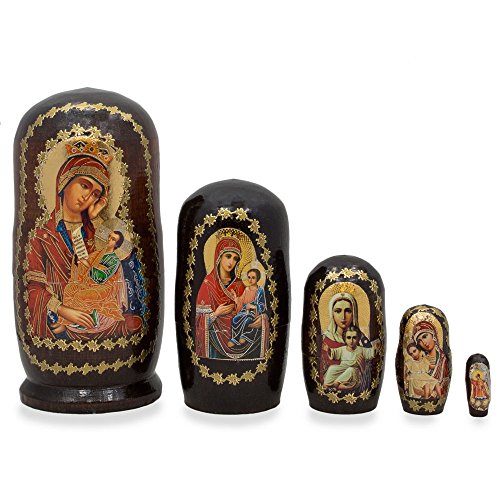 -. Title : 4.25'' Set of 5 Virgin Mary and Jesus Icon Russian Nesting Dolls