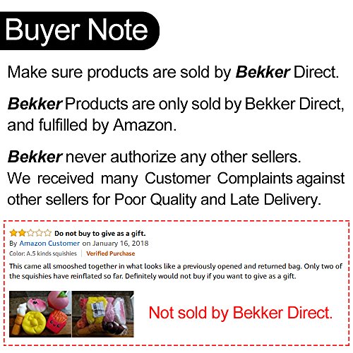 ***Notice: 1. Can not eat, just a toy! Kids need to play under the adult supervision. 2. Bekker's squishies are super slow rising, different from other sellers. If some has dent because of transportation, it will recover after a couple of days(maybe one day). 3. If some items have a slight smell from the paint applied, this smell dissipates after a few days. It's NON-TOXIC SAFE.