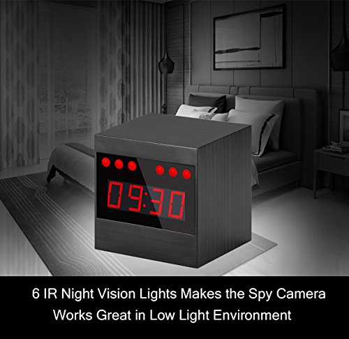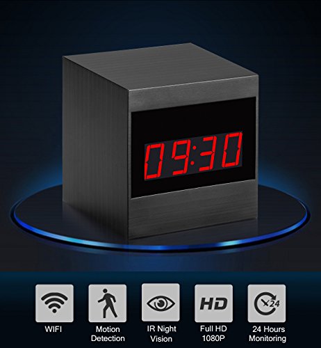-. Feature : 1080P HD Surveillance Camera and Normal Alarm Clock: This is a security camera with normal alarm clock shape, incredible invisible and inconspicuous. Full HD 1080P Lens makes sure it's crystal enough to see what's happening in your room. / WIFI Remote Real-time Live Video View: Connect to the 2.4G Wi-Fi, there is no distance limitation for you to view or record live videos after you complete the network configuration on your Smartphone. Support PC Computer and Smartphone Tablet APP Remote View and Control. / Motion Detection: Open this function in APP first, when a movement is detected, it will take a picture and push a message to your phone. Perfect as Nanny Cam, baby monitor for home office indoor house security surveillance. / IR Night Vision: Night vision allows you to see and record even in 100% total darkness. 6pcs Invisible Infrared Lights, which can allows you to see exactly what will happen when you aren't around in your home, office, business to keep an eye on what matters most from anywhere. / 24-hour Monitoring: It doesn't let you miss any a moment of activity, easy to operate, supports SD card cycle recording up to 32GB. The device will automatically overwrites oldest files when the memory fills up, it will save a video files in per 3 minutes. (Adjustable range from 1-20 minutes)