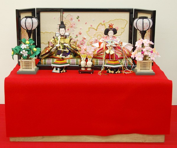 ・台座・屏風等には落ち着いた色目の雛人形セット。