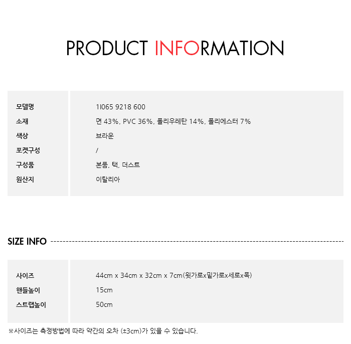 사이즈사이즈 : 44cm x 34cm x 32cm x 7cm(윗가로x밑가로x세로x폭)