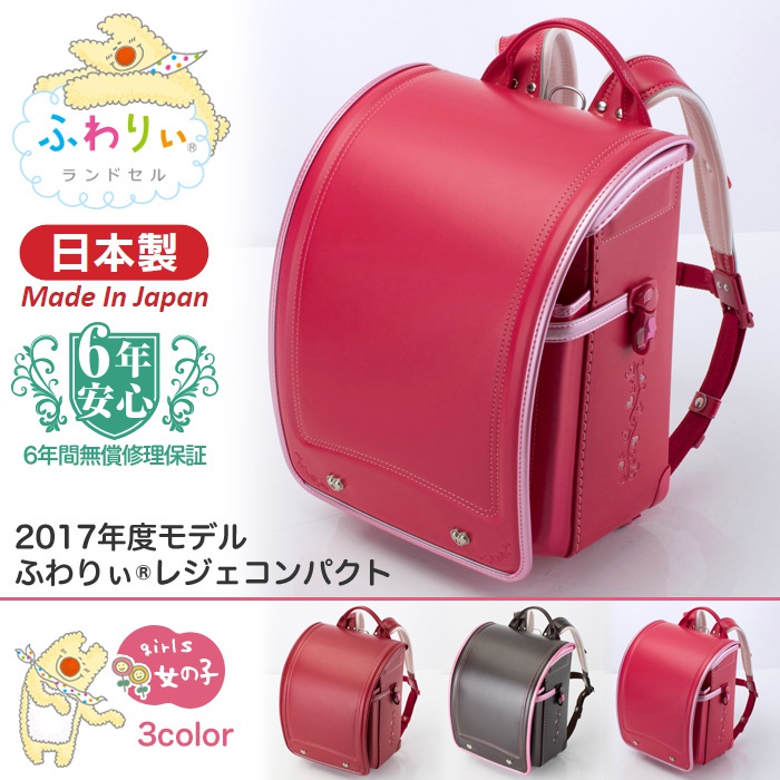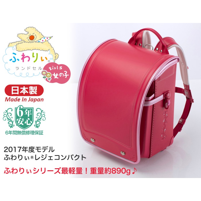 원본상품명: ふわりぃ ランドセル 女の子 2017年度モデル レジェコンパクト 6年保?付きA4フラットファイル??/クラリ?ノF/ふわりぃランドセルシリ?ズ最?量890g カ?マイン(赤)/セピア(茶色)/ストロベリ?(ピンク)の3色(送料無料/沖?除く)