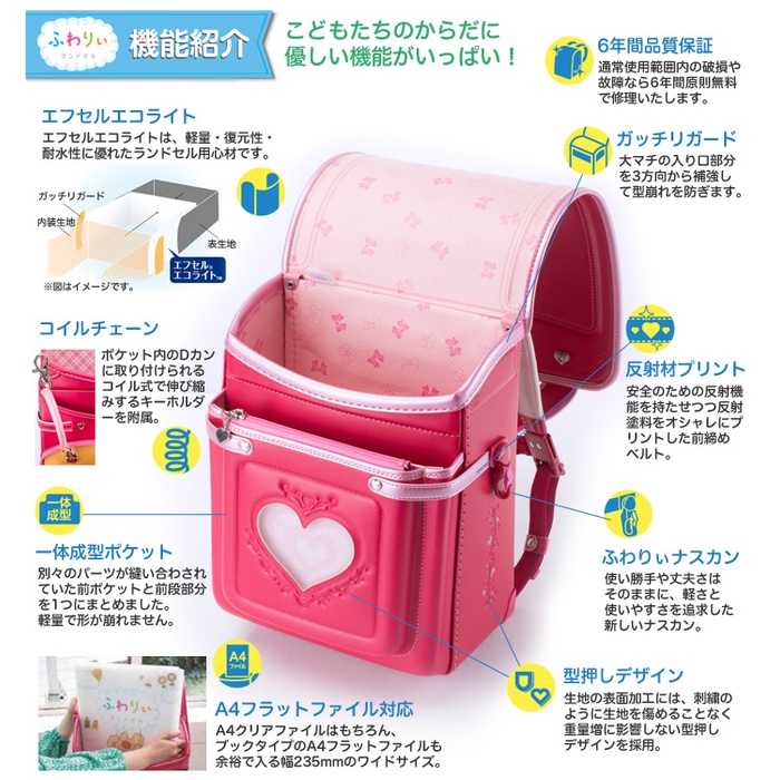 사뿐히 # 란도세루(초등학생이 어깨에 매는 가방) 소녀 레지스터《곤파쿠토》 설명 안심 국산 오래전부터 이어오는 숍 브랜드「사뿐히 # 란도세루(초등학생이 어깨에 매는 가방)」의 2017년도 모델.