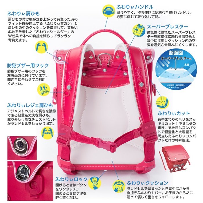 환기성의 높은「슈퍼 블래스터」배(방법/겨냥)가망 란도세루(초등학생이 어깨에 매는 가방)를 짊어진 때 등에 걸리는 부담을 부드럽게 커버 한다,쿠션성의 높은「사뿐히 # 쿠션」배(방법/겨냥)가망.