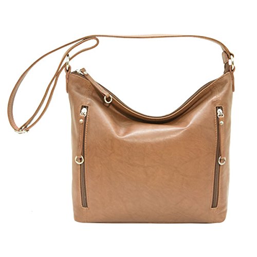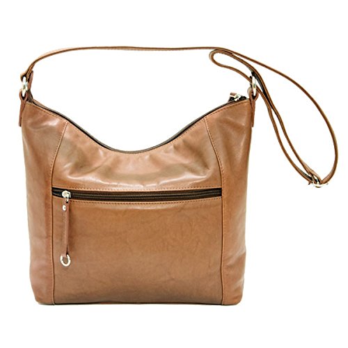 Leather Zip Shoulder Handbag (Antique Saddle)