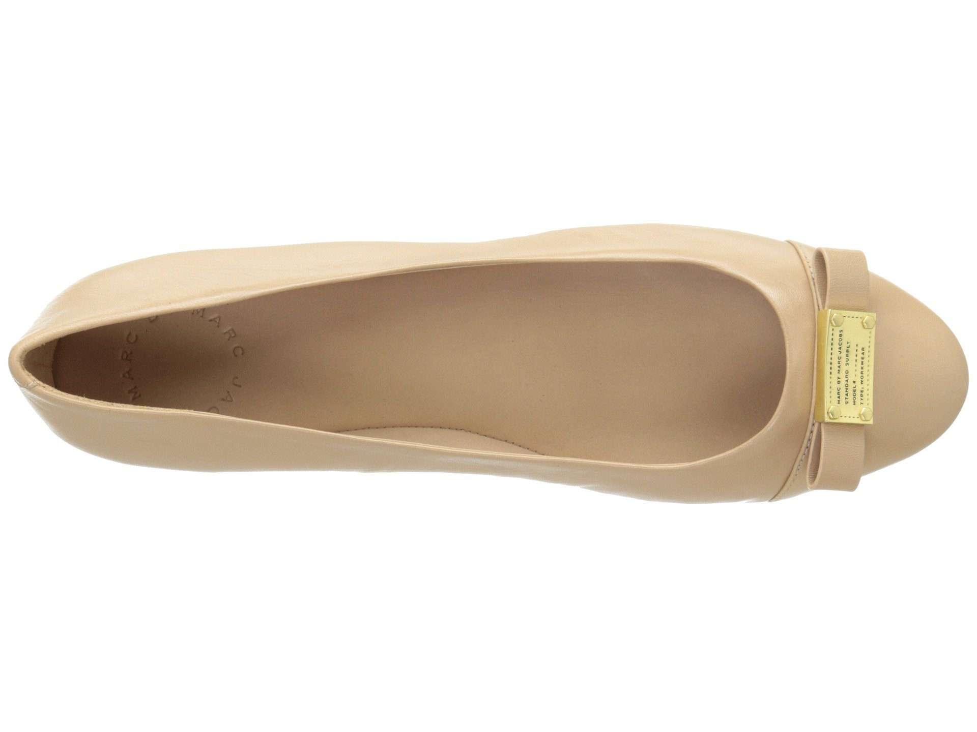 | Product Information SKU: #8156665So darling! Stand out with the smooth look of these Marc by Marc Jacobs™ flats.Leather upper.Slip-on style.Tuxedo-style detail with hardware logo plaque.Round toe.Leather lining.Lightly padded insole.Textured man-made outsole.Imported.Product measurements were taken using size 38.5 (US Women's 8.5), width M. Please note that measurements may vary by size.Weight of footwear is based on a single item, not a pair.Measurements: Heel Height: 1?4 in Weight: 7 oz |