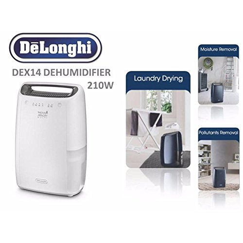 The Delonghi DEX14 dehumidifier is perfect for reducing the levels of humility in your rooms! how it works is that the DEX14 draws in moist air through the back of the unit and passes it over a refrigerative coil which condenses the moisture in the air turning it into water which is collected in a removable tank. Once the moisture has been separates, the air passes over another coil where it is warmed back up to an ambient temperature, before being circulated back into the room. The DEX14 is an ideal solution in rooms where damp is a problem, or in the winter months when condensation can build up on windows.Feature