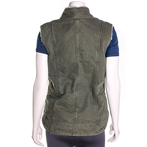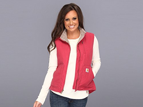 Product Description Made of 12-ounce, 100-percent cotton sandstone duck, this mock neck vest features Sherpa lining and a ton of pockets: Two convenient front pouch pockets, a map pocket on the left-chest with zipper closure, and two inside pockets. A drop tail adds extra coverage. 0