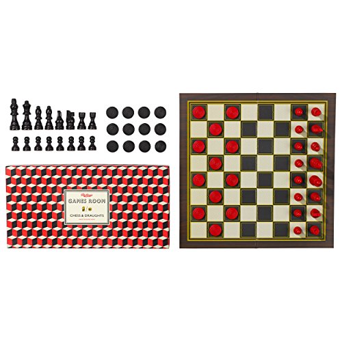 Settle down for a game of chess or checkers with cool pieces in red and black - Dimensions: 15.55" wide x 7.87" long/deep x 1.97" high