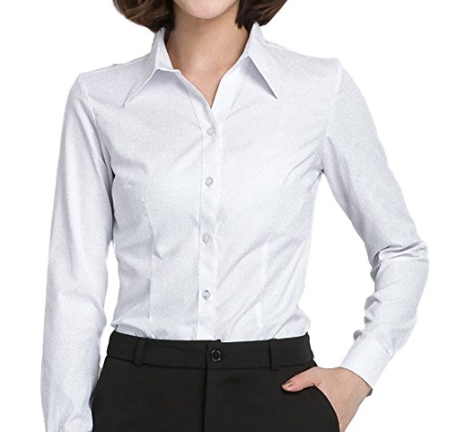 -. Feature : デザイン:ビジネス、フォーマルからプライベートまで。タイトめ の ベーシックな 襟付き 長袖 ブラウス Yシャツです。タイトだから、着こなしたシルエットがスリムに見えます。 / 色:4色からお好きな色をお選びいただけます(ホワイト、ピンク、ブルー、ブラック)。 / サイズ:なんと6サイズ(S、M、L、XL、2XL、3XL)に対応!※S(着丈60cm 胸囲84cm 肩幅36cm 袖丈56cm 腰回り76cm)、M(着丈61cm 胸囲88cm 肩幅37.2cm 袖丈57cm 腰回り80cm)、L(着丈62cm 胸囲92cm 肩幅38.4cm 袖丈58cm 腰回り84cm)、XL(着丈63cm 胸囲96cm 肩幅39.6cm 袖丈59cm 腰回り88cm)、2XL(着丈64cm 胸囲100cm 肩幅40.8cm 袖丈60cm 腰回り92cm)、3XL(着丈66cm 胸囲104cm 肩幅42cm 袖丈61cm 腰回り96cm) / 素材:ポリエステル68% 綿32% / ※実際の商品とは色味や素材感が異なって見える場合がございます。※海外生産のため、商品によっては多少の縫製の甘さが出る場合もございます。ご理解のほどよろしくお願いいたします。