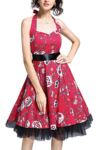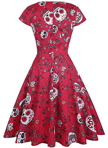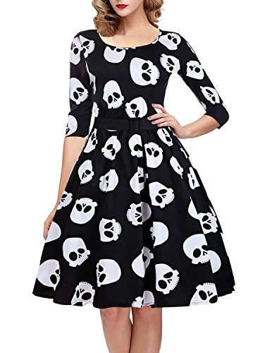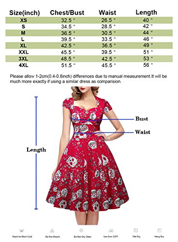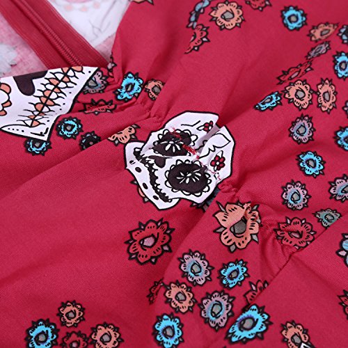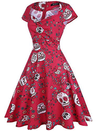 OTEN Women's Sugar Skull Floral 1950s Rockabilly Vintage Dress for Festival Party Vintage Rockabilly dress for your wardrobe: ✔Adorable sugar skull and flowers print,a nice Costume for Halloween,Thanksgiving,Christmas Eve,Xmas festival